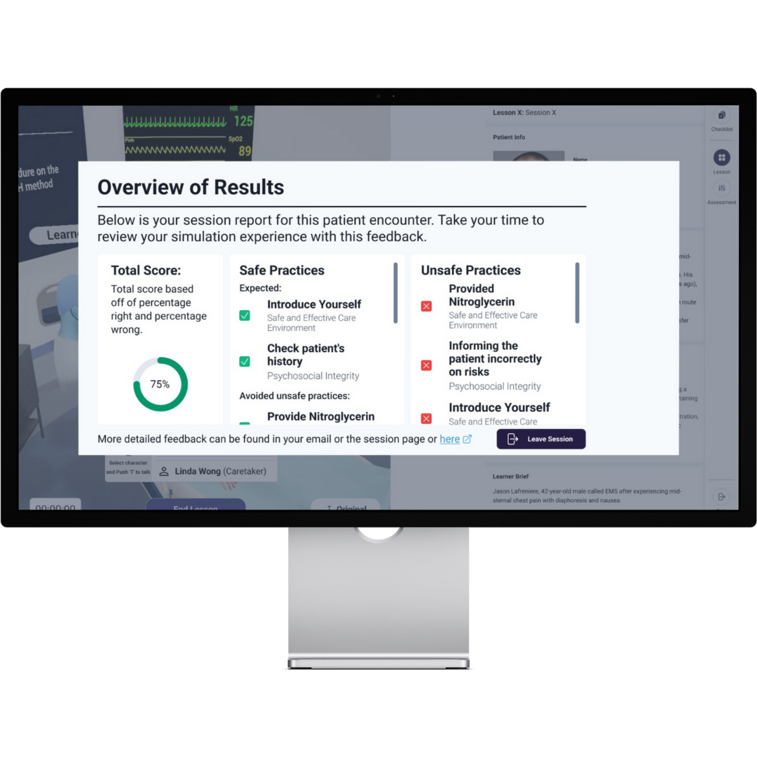Yes, you can customize our library of medical scenarios and create your own simulations. From patient types, their conditions, vitals, medication, assessment checklists, and more. onboarding the right person.